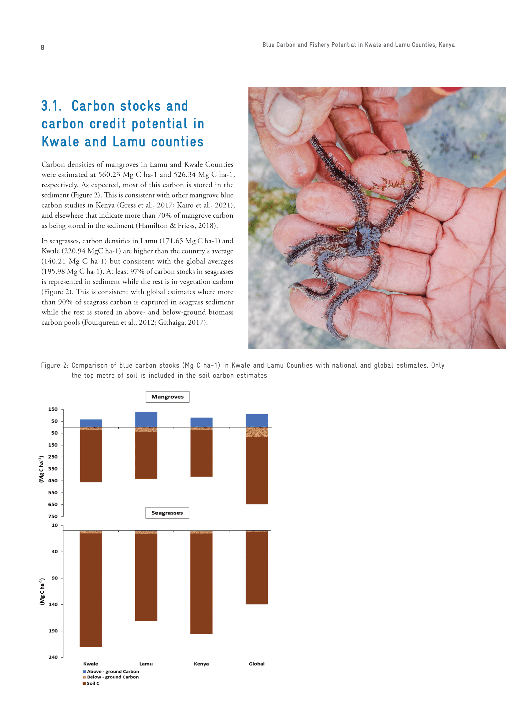 GIZ Kenya commissioned Big Blue to design a feasibility study case report that would analyse the potential for blue carbon and fishery development in Kwale and Lamu County. The project required a sophisticated blend of visual elements and data presentation to effectively convey the study’s findings to its stakeholders.
