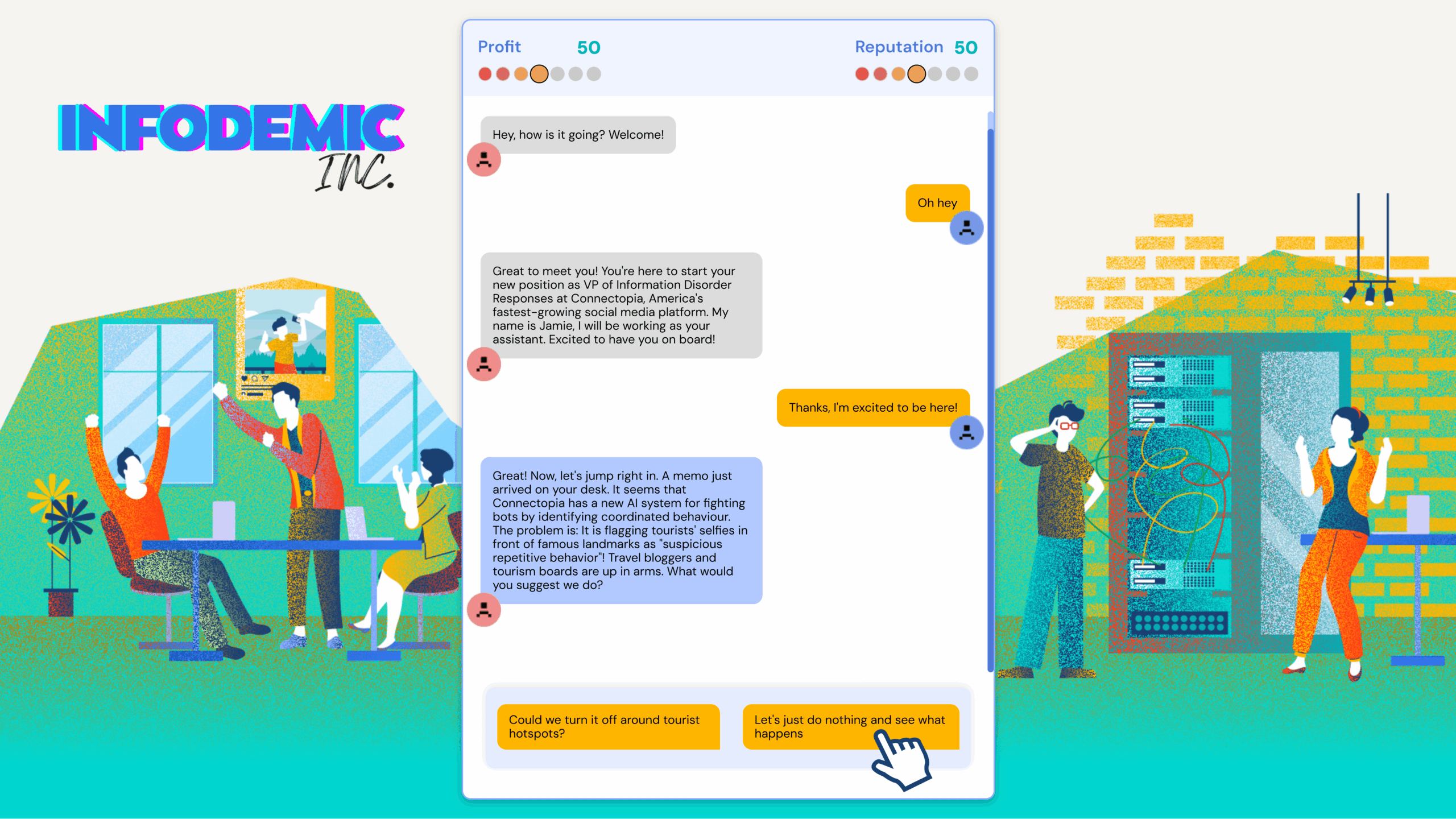The Infolead project set out to raise awareness about digital media, online harms, and platform governance through an educational game. Aimed at students, researchers, and the general public, the goal was to create an accessible tool that supports learning, encourages critical thinking, and helps disseminate research and training resources from the Infolead programme.