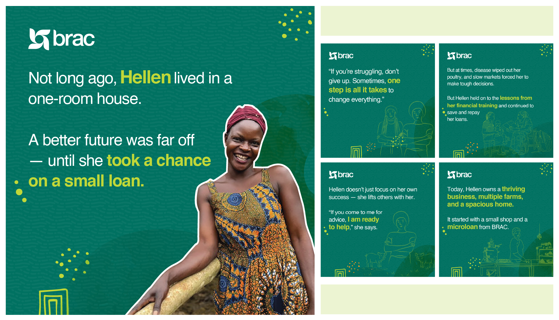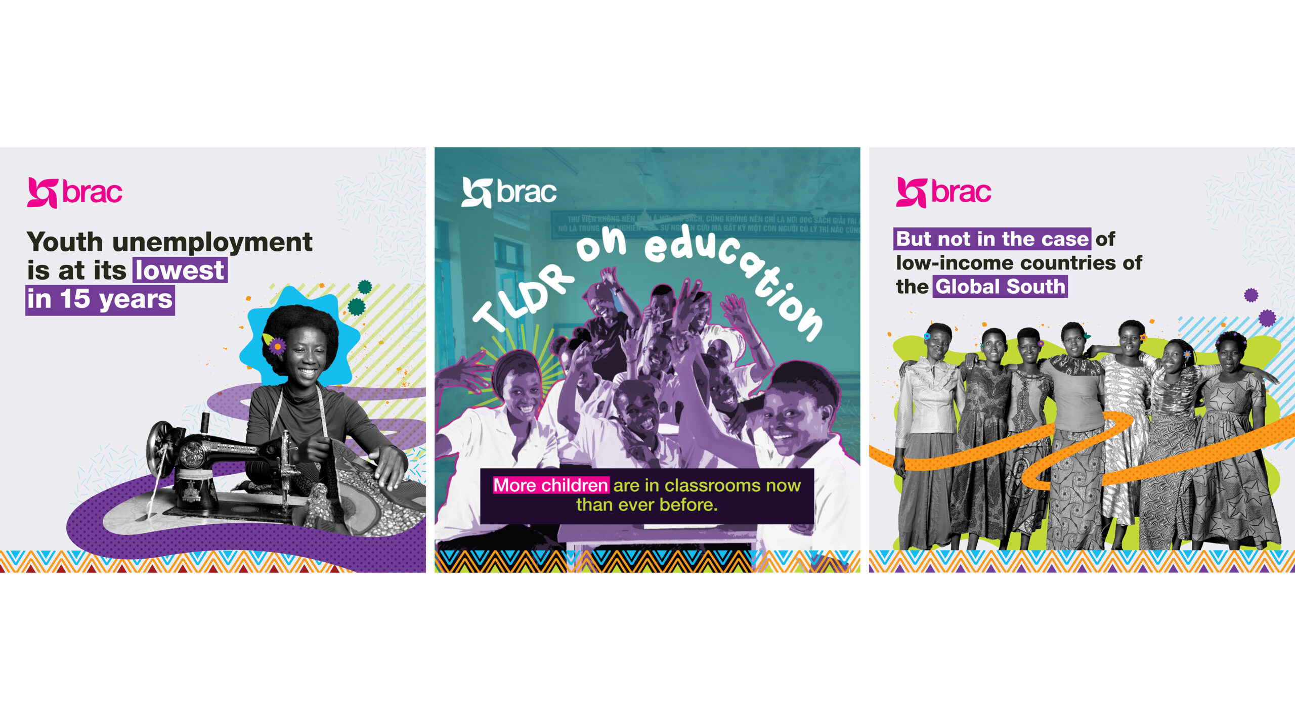 Each year, BRAC International runs several targeted social media campaigns, requiring daily content creation, iteration, quality assurance, and both organic and paid reach. Big Blue was brought onboard to produce social media contents for BRAC’s Dhaka-based creative team to publish. Our contents are focused on human success stories, development initiatives, and impactful statistics. All contents are delivered in BRAC’s specific tone of voice and visual language.